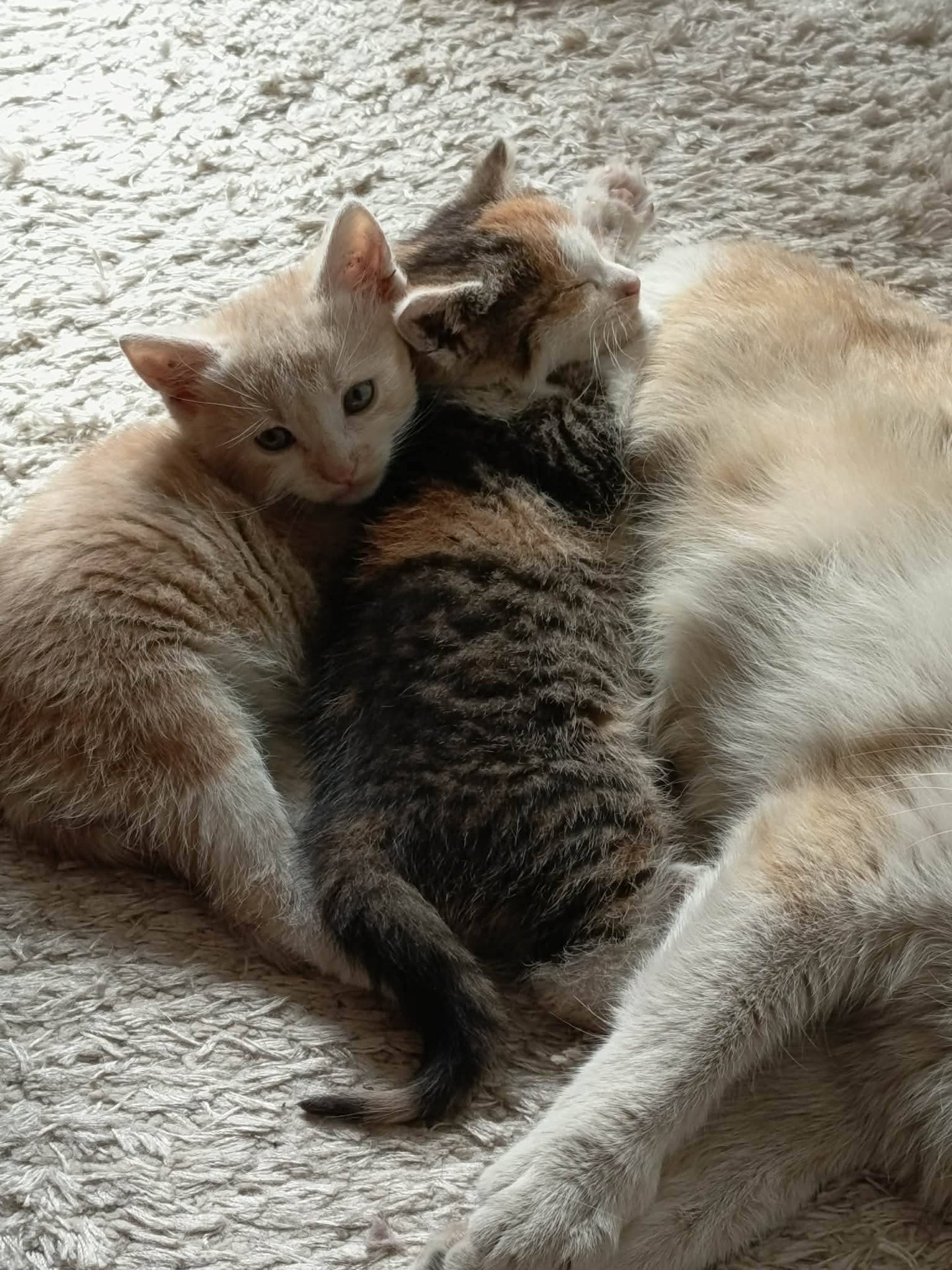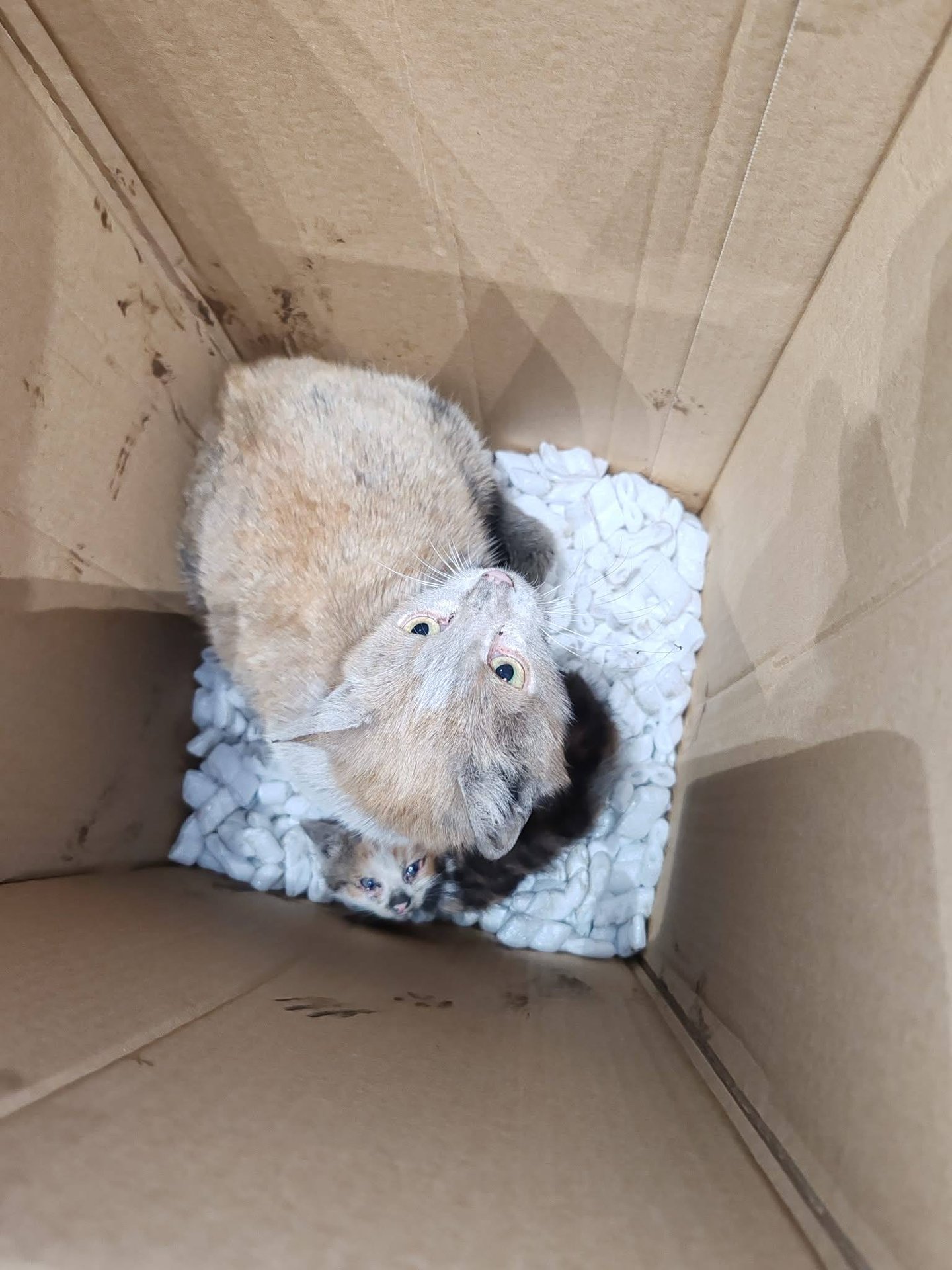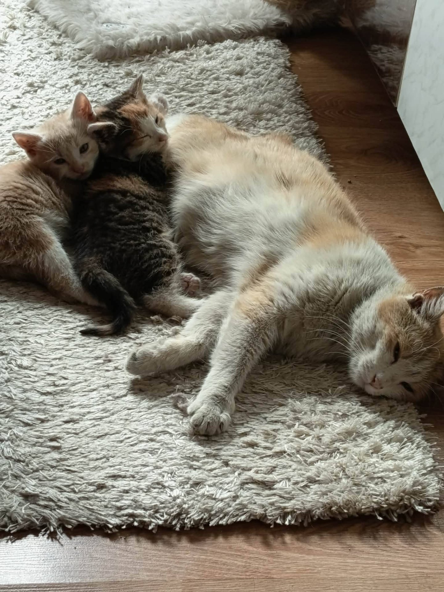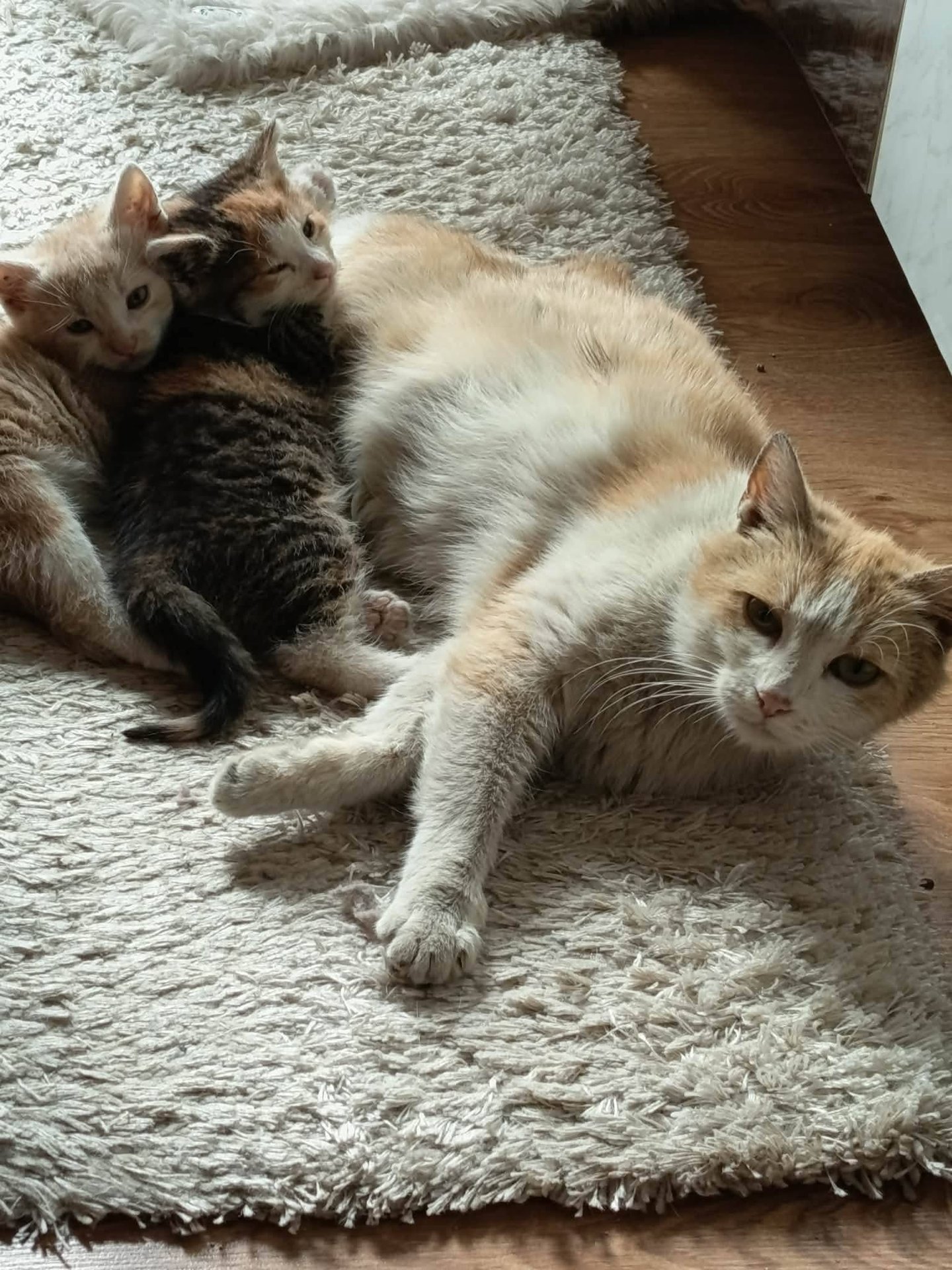 Podali sme pomocnú labku mamine a jej dvom mačiatkam. Všetci traja boli hrozne špinaví od oleja a k tomu aj chorí.